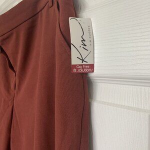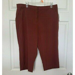 Elevate your casual wardrobe with these Kim Rogers Women's Cropped Pants in size 16. The comfortable waistband and gap-free fit make them perfect for everyday wear, while the solid cinnamon color adds a touch of sophistication. With a flat front and tapered leg style, these pants are made of Cotton/Spandex material that offers both style and comfort.