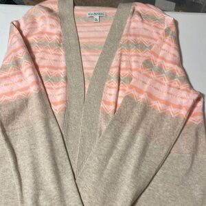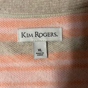 Kim Rogers lapel front cardigan with horizontal bands of peach and beige. 100% cotton. Size XL. New with tag