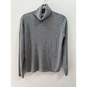 Kim Rogers Cashmalon Gray Cable Knit Sweater Turtleneck Womens Medium