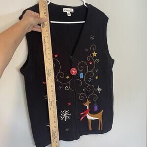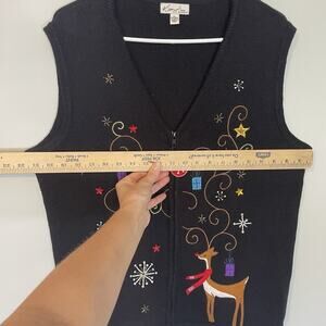 Kim Rogers Christmas Sweater Vest Petite L Reindeer Sequin Embellished Party