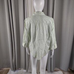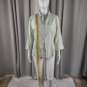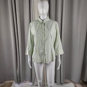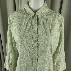Kim Rogers Cotton Blend Green White Floral Pattern Button Down Shirt Size Large