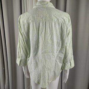 Kim Rogers Women's Cotton Blend Green White Floral Pattern Button Down Shirt Size Large