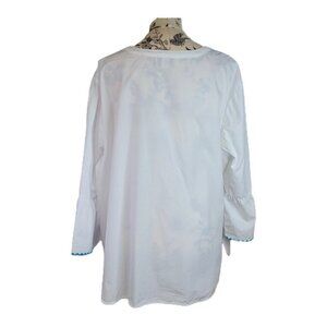 Kim Rogers Curvy Size 2X 100% Cotton Boho Shirt White Blouse Bell Sleeve