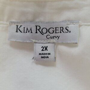 See photos for measurements and material content. Please feel free to ask questions. Kim Rogers Curvy Size 2X 100% Cotton Boho Shirt White Blouse Bell Sleeve Good pre-owned condition. No stains or rips. Perfect Spring transition piece!