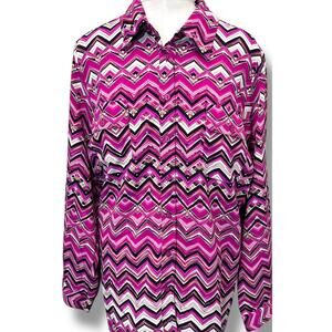 Kim Rogers Curvy Womens 3X Long Sleeve Button-Up Chevron Zigzag Print Blouse