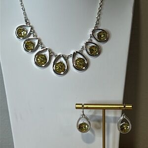 This stunning jewelry set features a silver chain with gold accents, perfect for any occasion. The elegant design adds a touch of sophistication to your look.