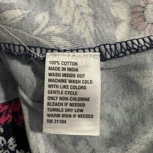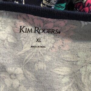 Kim Rogers Floral Print Cotton Top XL Navy 3/4 Sleeve Casual Boho Cottagecore