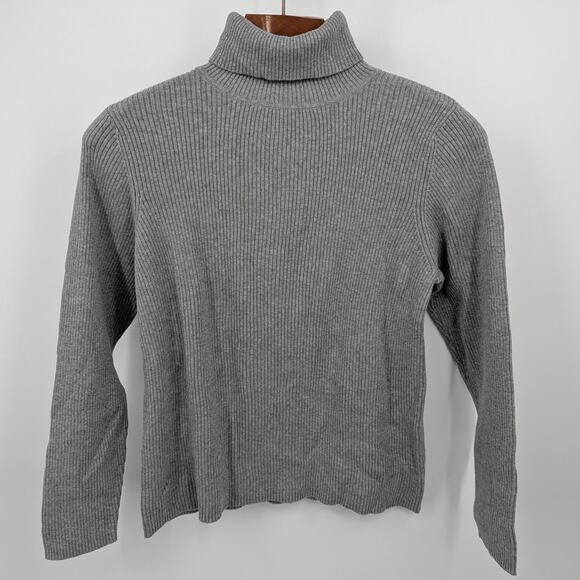 Kim Rogers Gray Ribbed 100% Cotton Turtleneck Sweater XL Classic Core Fall Y2K