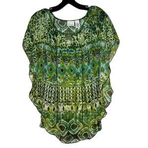 Kim Rogers Green Patterned Sheer Tunic Top Women's Medium Boho