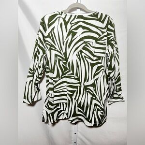 Stylish and comfortable, this green and white patterned top is perfect for any casual outing