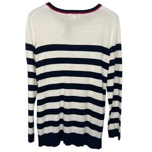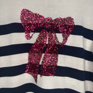 NEW with tag Kim Rogers striped pink sequin bow long sleeve holiday sweater. Super soft and cozy. Cream, navy blue and pink. Size Medium. Retail $54.