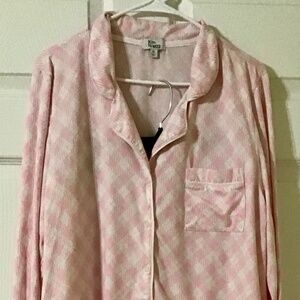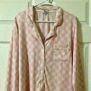 Kim Rogers Pink and White Plaid Long-Sleeved 2-Piece Pajama Set SOFT XL