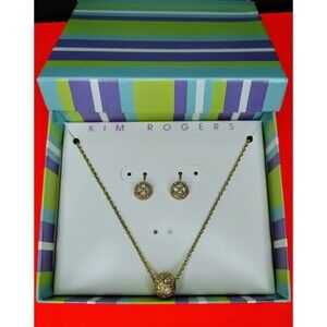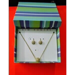Kim Rogers Jewelry Set Necklace Earrings Gold Tone Crystal Ball Gift Boxed 18" N