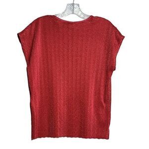 Kim Rogers Knit Top Blouse Size M Red/Pink Metallic Stretch Cap Sleeve