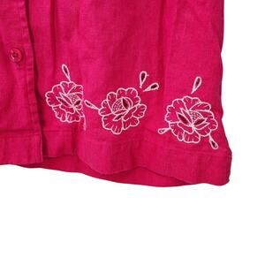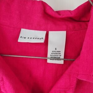 This Kim Rogers linen blend button-down shirt is in excellent condition and is perfect for warm weather! The pink color is so fun and cheerful. Get ready to add a pop of color to your wardrobe with this fabulous find!