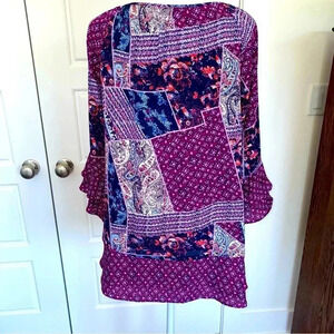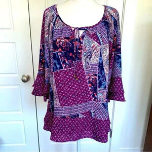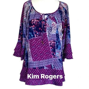 Kim Rogers Peasant Top Size M Like New. Measurements are in the pictures. Offers welcomed. Has two rows of layers on bottom & sleeves. Very cute. Happy Poshing.