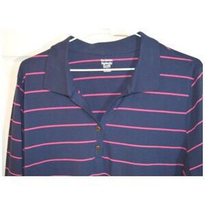 Kim Rogers Perfectly Soft Sz XXL Women's Blue Pink Stripe Blouse Long Sleeve Top