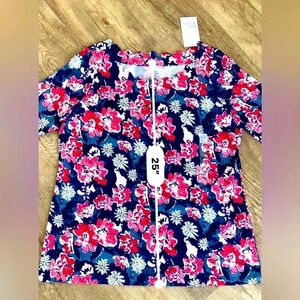 Kim Rogers Perfectly Soft Tee Top With Scalloped Neckline NWT Navy with red & white flowers. Measurements are in the pictures. Offers Welcomed. Happy Poshing.