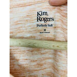 Kim Rogers Perfectly Soft Tee Women Med 3/4 Sleeve Crew Orange V Neck Space Dyed