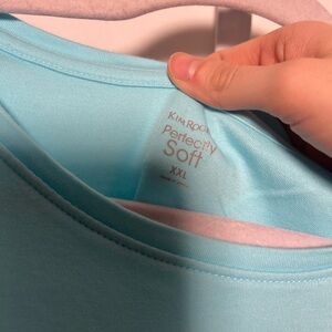 Kim Rogers Perfectly Soft Women’s Palm Trees Blue Short Sleeve Top