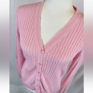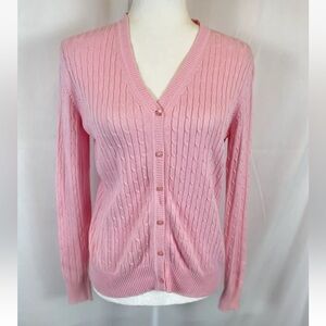 Kim Rogers Petite Small Pink V Neck Button Front Cardigan Sweater Size PS Woman