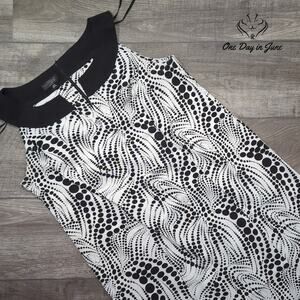 A most becoming sleeveless frock in a striking palette of white and black, perfectly suited for both formal occasions and casual outings. The dress's delightful blend of polyester and spandex ensures both comfort and elegance, with a fabric that gracefully skims the figure while maintaining its pristine shape throughout the day's activities.