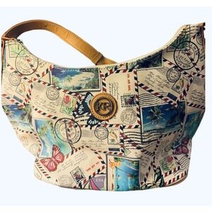 Kim Rogers Postcard Stamp Print Satchel Bag Medium Size Butterfly Purse Handbag