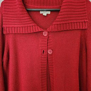 Kim Roger's Red Cable Knit Sweater 2 Button Front Closure. Women's Size L