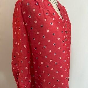 Kim Rogers Red Star Print Blouse Large