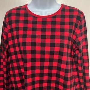 Kim Rogers Red & black plaid 100% cotton crewneck, long sleeve shirt Sz M
