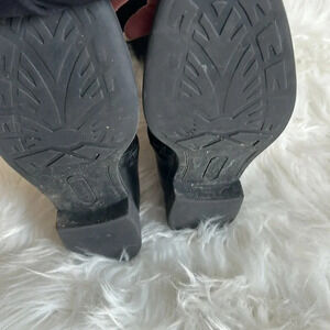 These are gently used Kim Rodgers tall black boots in a size 6. There is a little scalp on the back of the left boot as seen in last picture.