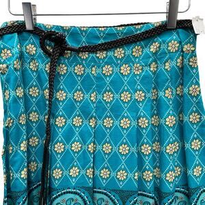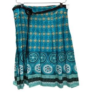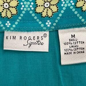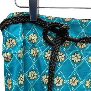 Kim Rogers Signature Blue Plaid Floral Paisley Pleated Skirt With Belt. Colors in teal, yellow, white and black. Size Medium. 100% cotton print fabric. Side zip. Lined. New With Tags.