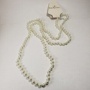 Kim Rogers Silver Tone Faux Pearl Long Necklace - Stylish & Elegant Women 48"