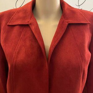 Kim Rogers. Size 10. Long Sleeve Red Open Front Suede Cloth Jacket. DB2