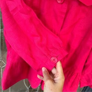 Kim Rogers Size 12 Cropped Peplum 3/4 Length Sleeves Button Up Jacket linen
