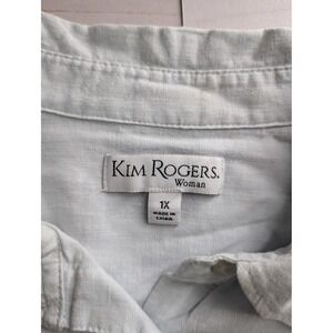 Kim Rogers Size 1X Blue Ombre Collared Button Up Long Sleeve Linen Top
