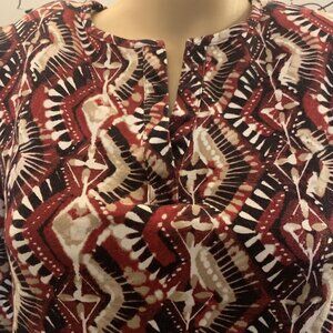 Kim Rogers. Size M. Cotton V-neck Stretch Pullover. Aztec Pattern. B36.