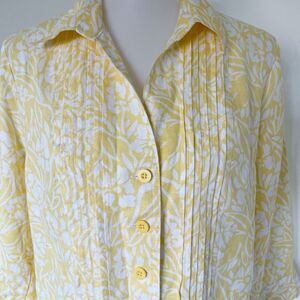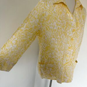 Kim Rogers Size PXL Petite XL Jacket Blazer Yellow Floral Linen 100% Linen