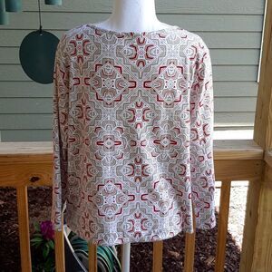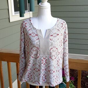 Kim Roger's Size L White, Red, and Brown 3/4 Sleeve Top