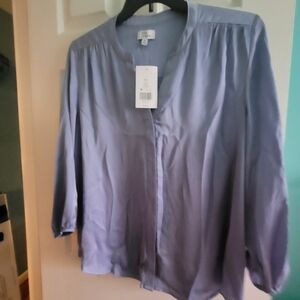 Chic lavender or periwinkle blouse by Kim Rogers. Ideal for versatile styling.