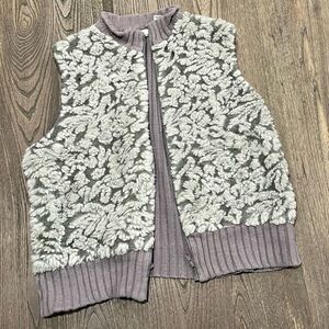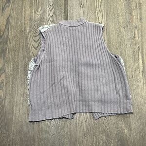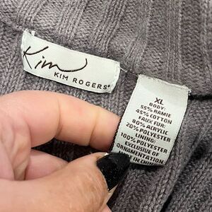 Kim Rogers Sweater Vest Fuax Fur Zip Up Ribbed Knit Sleeveless Mock Neck Gray XL