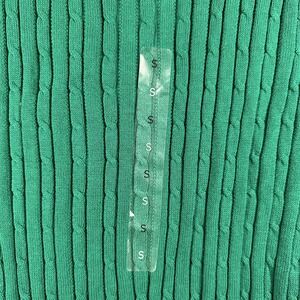 Kim Rogers Sweater Womens Small Green V Neck Ribbed Knit Long Sleeve Pullover