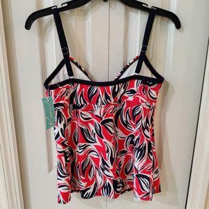 Kim Rogers Swim Coral Navy Tankini Swim Top Bow Adjustable Straps Medium NWT