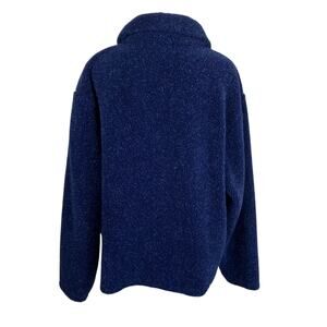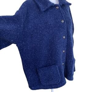 Kim Rogers Sz L Vtg 90s Navy Fuzzy Fleece Teddy Jacket Shacket Button-up Boxy