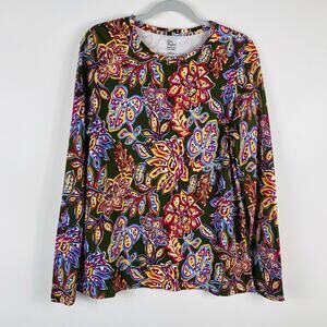 Kim Rogers Sz Large Floral Print Perfectly Soft Long Sleeve Tee Top 100% Cotton