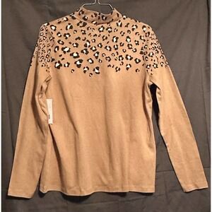 Kim Rogers Tan Leopard Print Mock Long Sleeve Shirt
