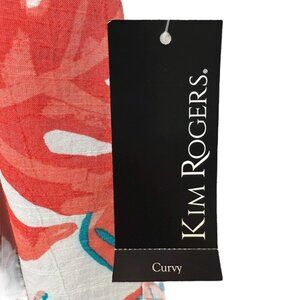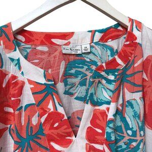 Kim Rogers Top Plus Size 2X Tropical Leaf Coral Turquoise Short Sleeve Tunic