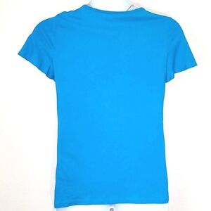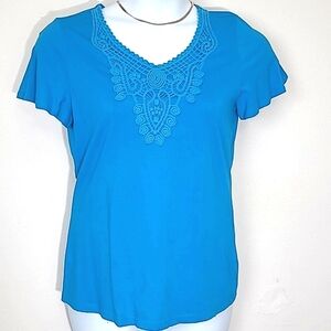 Kim Rogers T-shirt short sleeve blue Lace Overlay V Neck 100% cotton