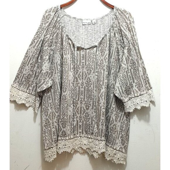 Kim Rogers Turkish Print Lace Accent Sweater Top Size 3X
