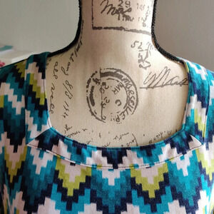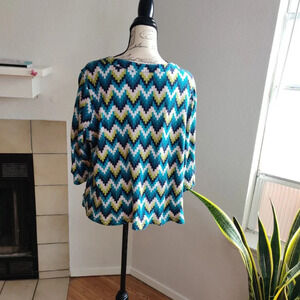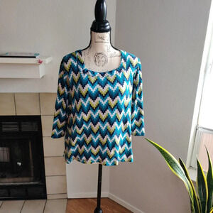 Kim Rogers Two Tops Geometric Print Multicolor 3/4 Sleeve 100% Cotton Tunic 1X